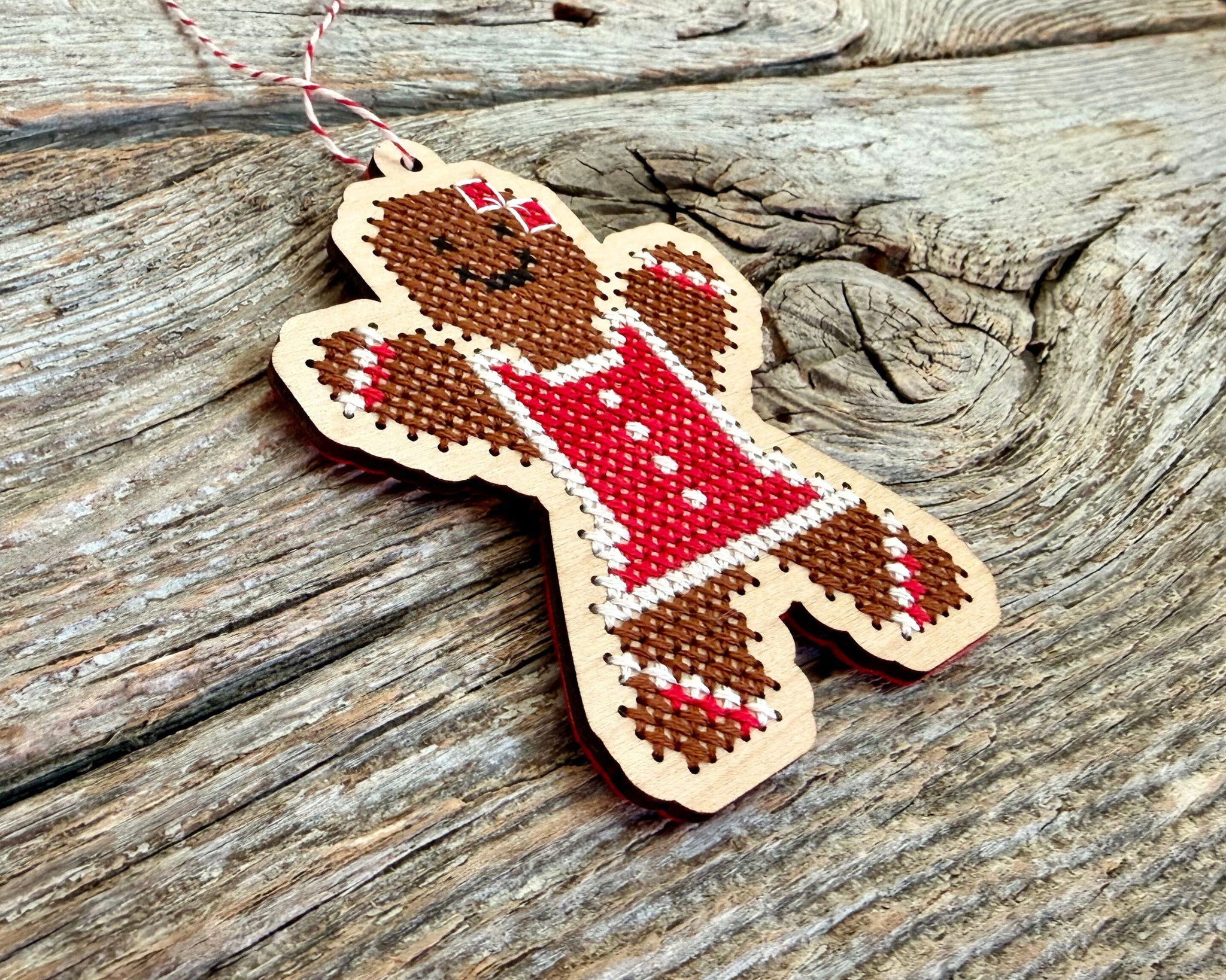 • Load image into Gallery viewer, Gingerbread girl ornament cross stitch kit